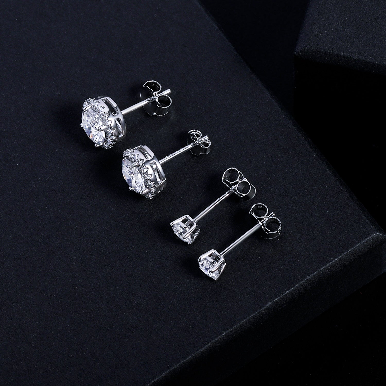 TIKJE 2 Pairs Stud Earrings Sets 925 Sterling Silver Halo Earrings for Women Round 9mm 4mm Earrings Stud