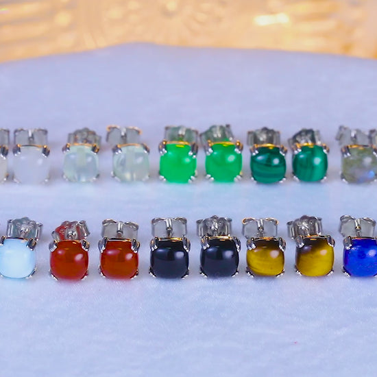 TIKJE Gemstone 925 Sterling Silver Earrings White Gold Plated Jade 6mm Square Earrings Women's 1 Pair (Nickel Free)