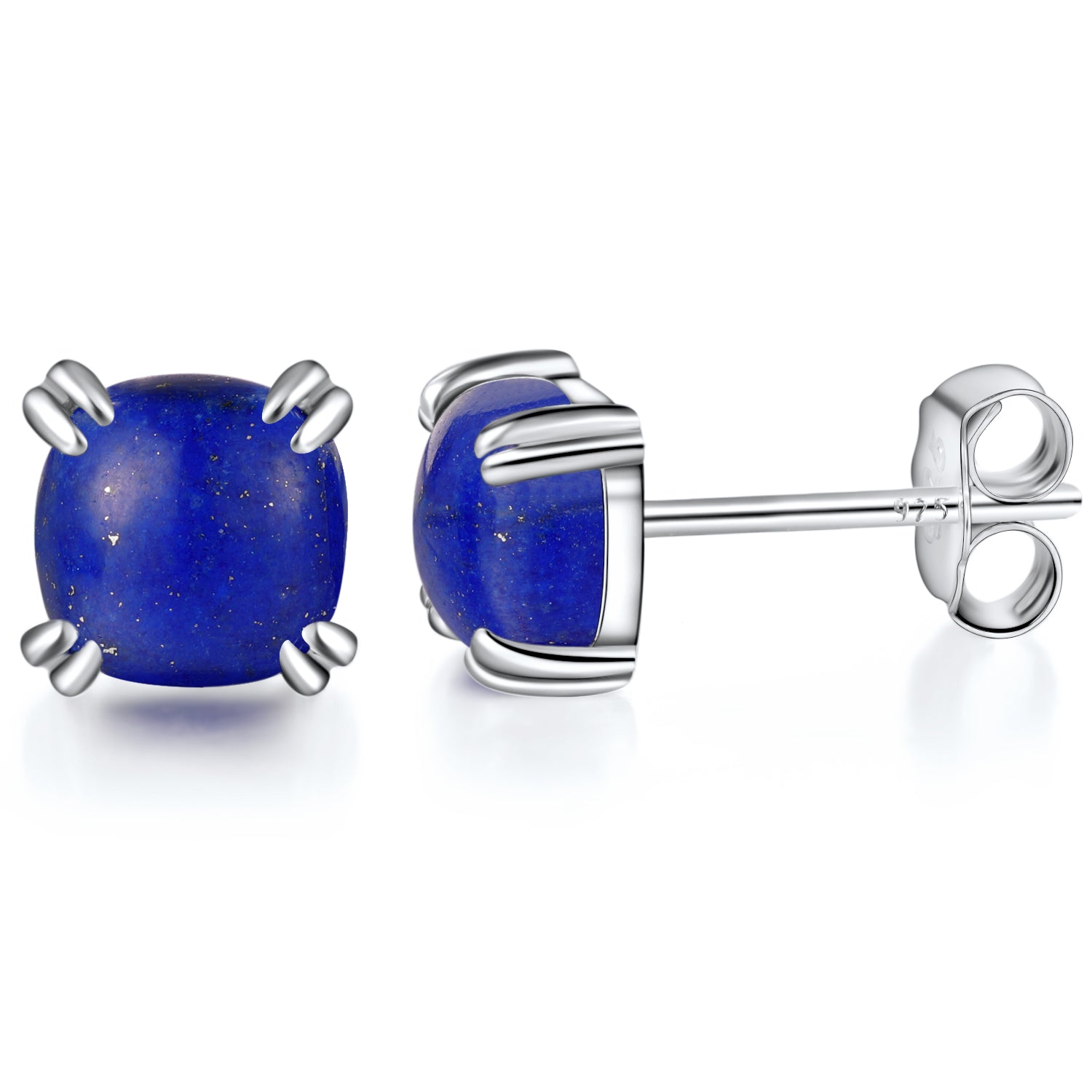 TIKJE Gemstone 925 Sterling Silver Earrings White Gold Plated Lapis Lazuli 6mm Square Earrings 1 Pair (Nickel Free)