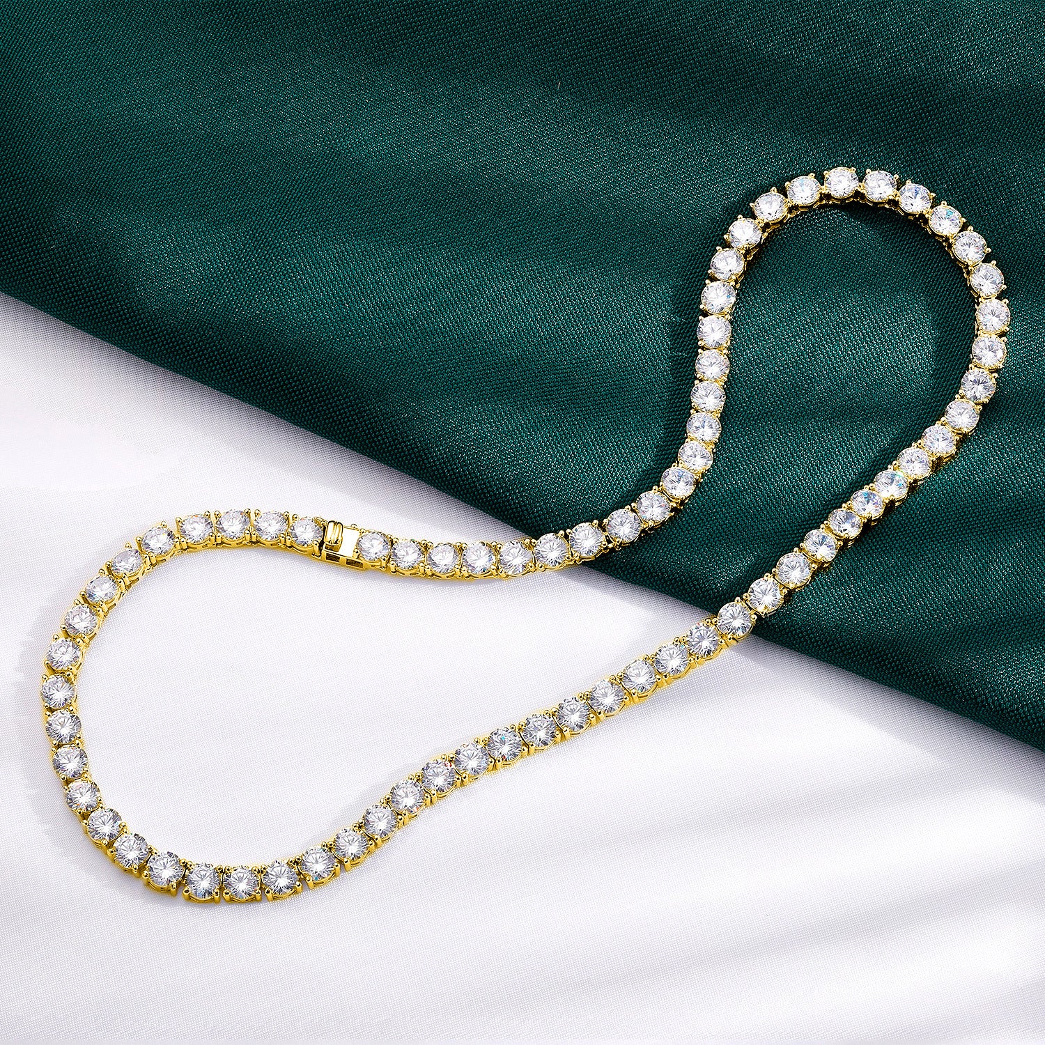 Classic Tennis Necklace Diamond Chain - Made of 3 prong setting 5A+ 5mm cubic zirconia. Round cut CZ stone are beautiful synthetic gemstone that is durable and shining.
